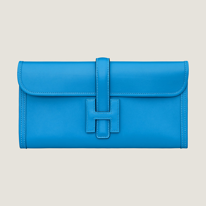 H 탭 잠금 디테일이 특징인 스위프트 카프스킨 소재의 클러치