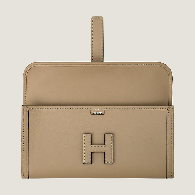 H 탭 잠금 디테일이 특징인 스위프트 카프스킨 소재의 클러치