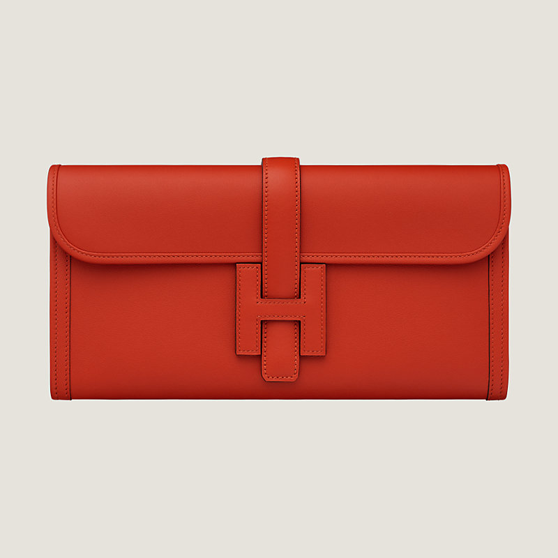 H 탭 잠금 디테일이 특징인 스위프트 카프스킨 소재의 클러치