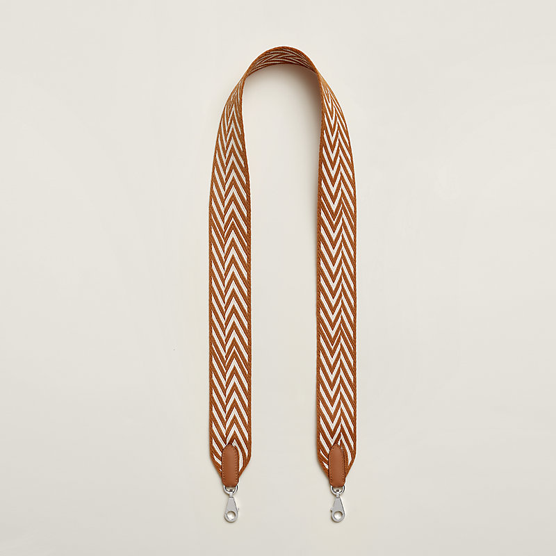 Bandoulière en sangle Zigzag et veau Swift, bijouterie argentée palladiée, grand mousqueton