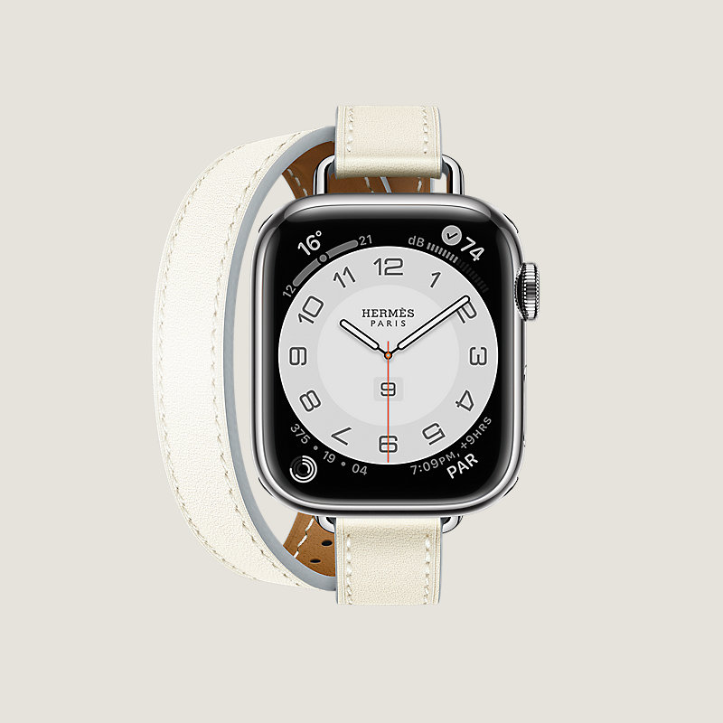 Boîtier Apple Watch Hermès Series 8 en acier inoxydable 41 mm & Bracelet double tour en veau Swift coloris Blanc