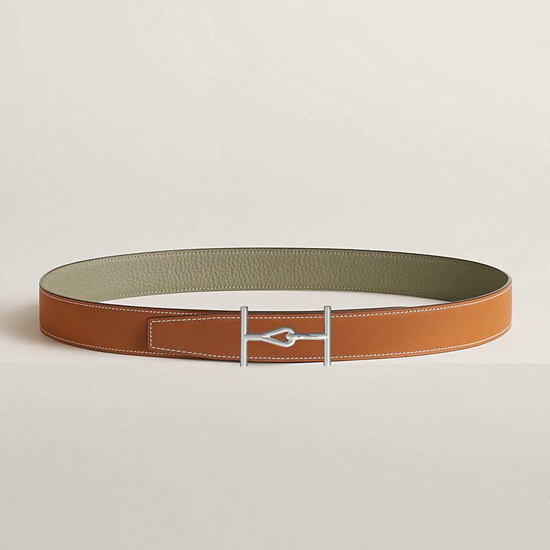 & Cuir de ceinture réversible en veau Chamonix 135 et veau Togo. Fabriqué en France