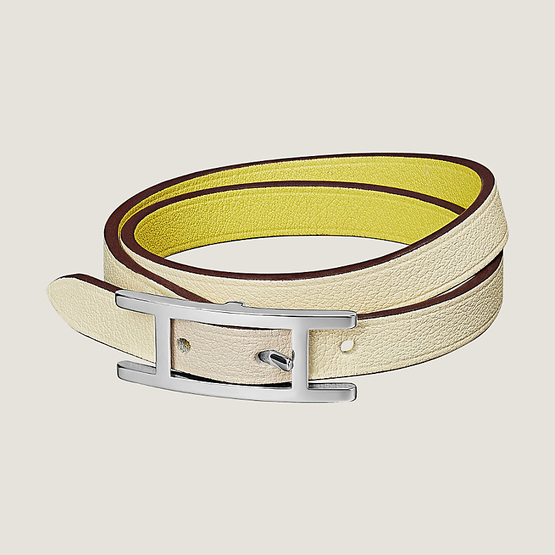 Bracelet double tour réversible en veau Swift. Finition palladié