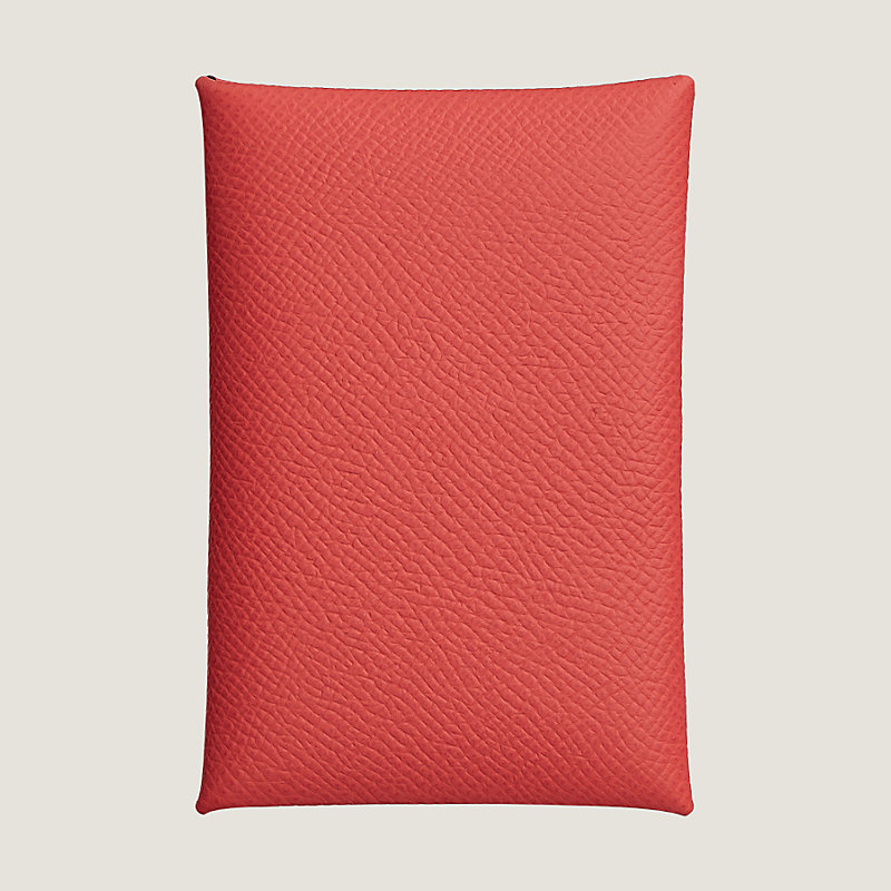 Porte-cartes en veau Epsom, fermé par un bouton-pression « clou de selle » argenté palladié
