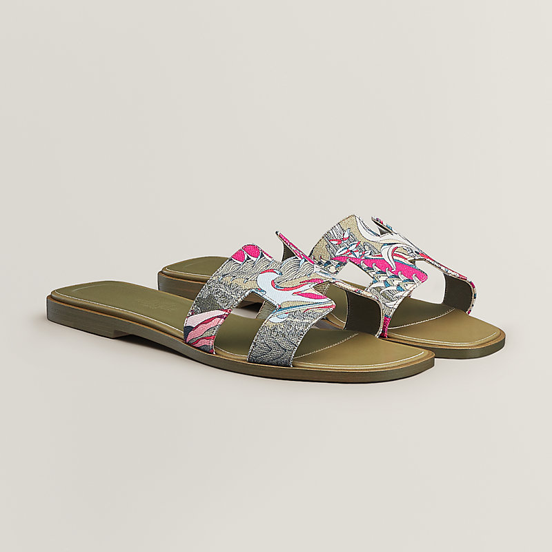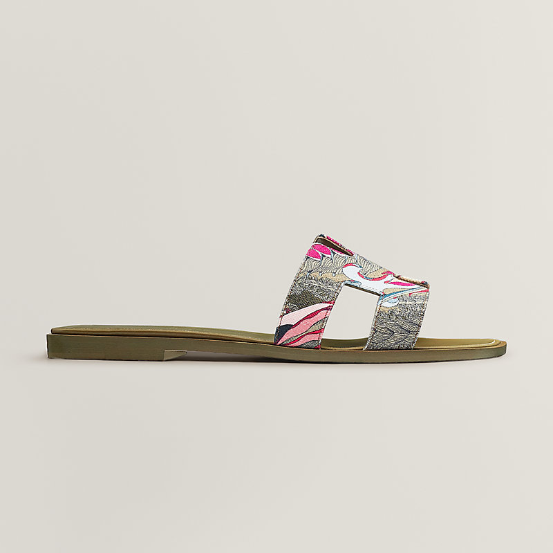 Sandales en toile de coton imprimée « Fantaisie Botanique ». Un modèle emblématique de la Maison.