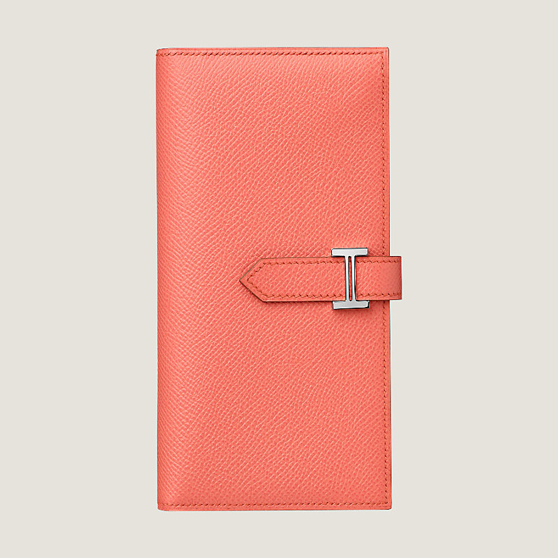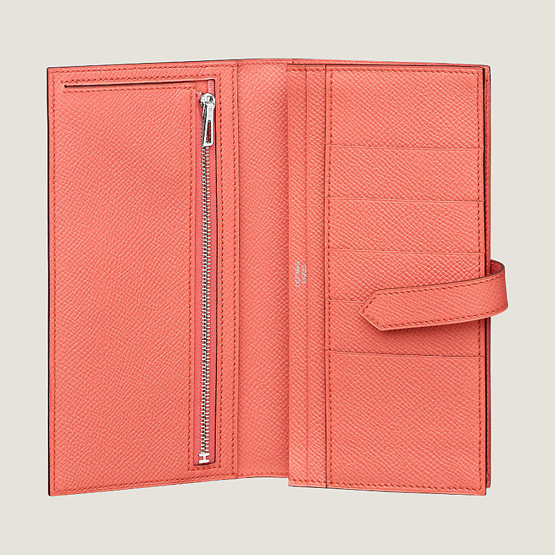 Wallet with gusset in Epsom calfskin with 5 credit card slots, 2 pockets, zipped change purse and palladium plated 'H' tab closure