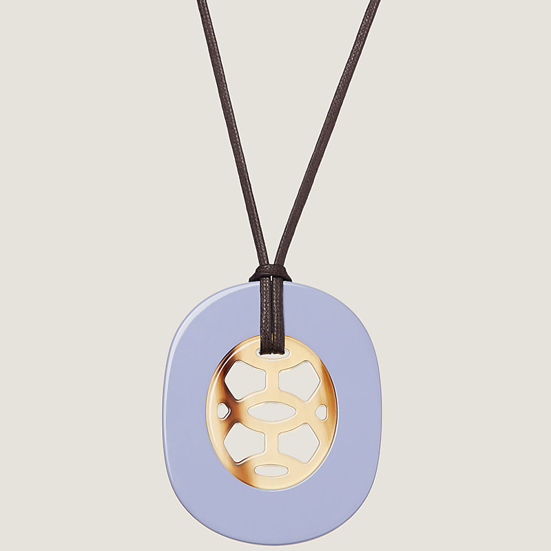 Pendant in lacquered buffalo horn with adjustable waxed cotton strap.