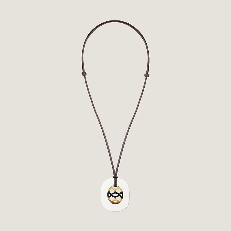 Pendant in lacquered buffalo horn with adjustable waxed cotton strap.