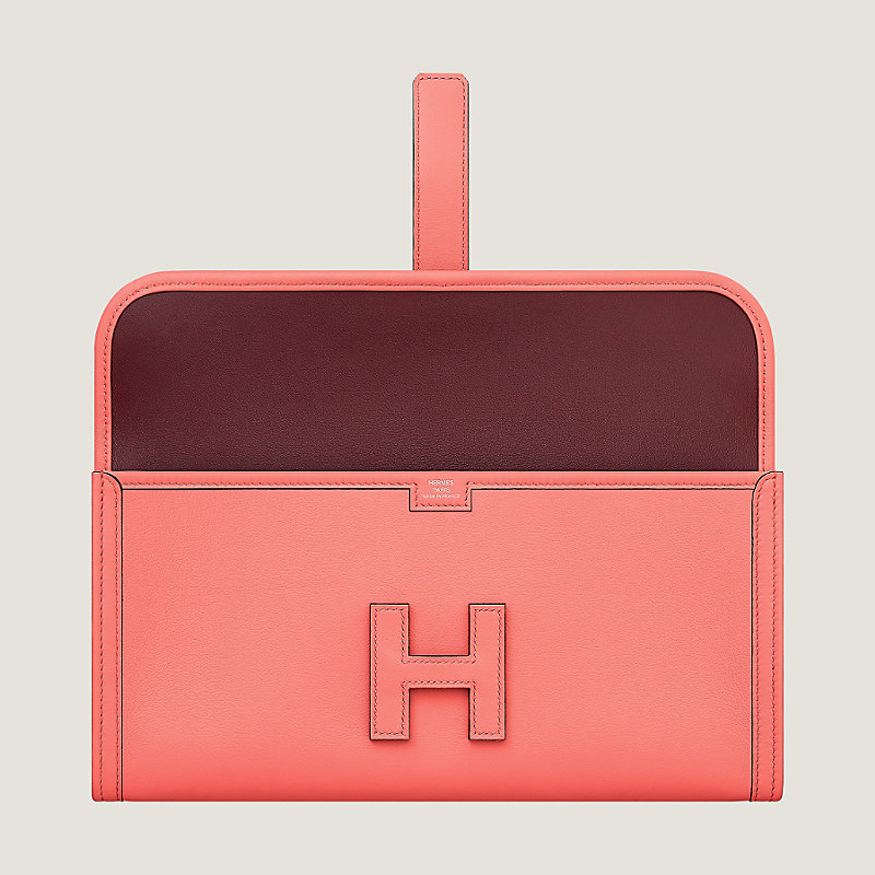 Clutch in Swift calfskin with interior back pocket and H tab closure