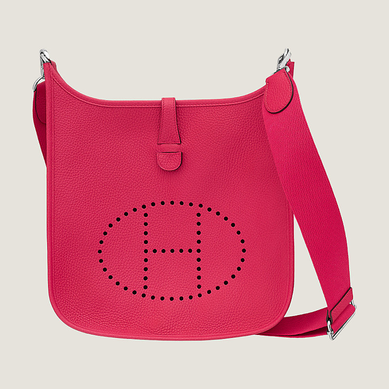 Bag in taurillon Clemence leather with adjustable shoulder strap, perforated leather "H", outside pocket, leather tab closure and palladium plated hardware