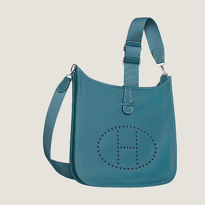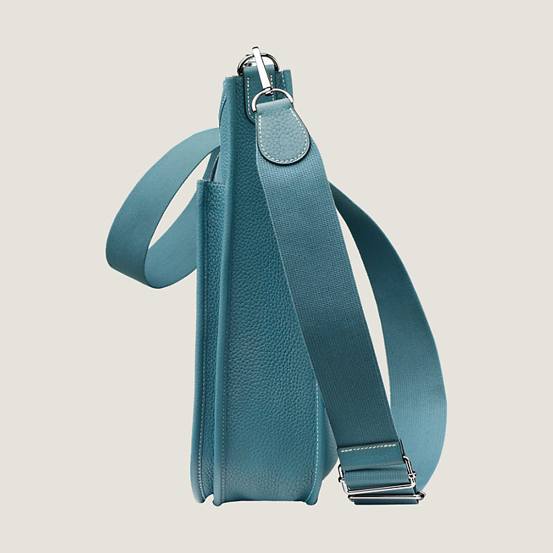 Bag in taurillon Clemence leather with adjustable shoulder strap, perforated leather "H", exterior pocket, leather tab closure and palladium plated hardware