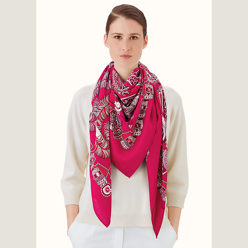 Preserve the beauty of your scarf by avoiding contact with rain, water and other chemicals. Store it flat and untied, and entrust it to a professional dry cleaner when needed.