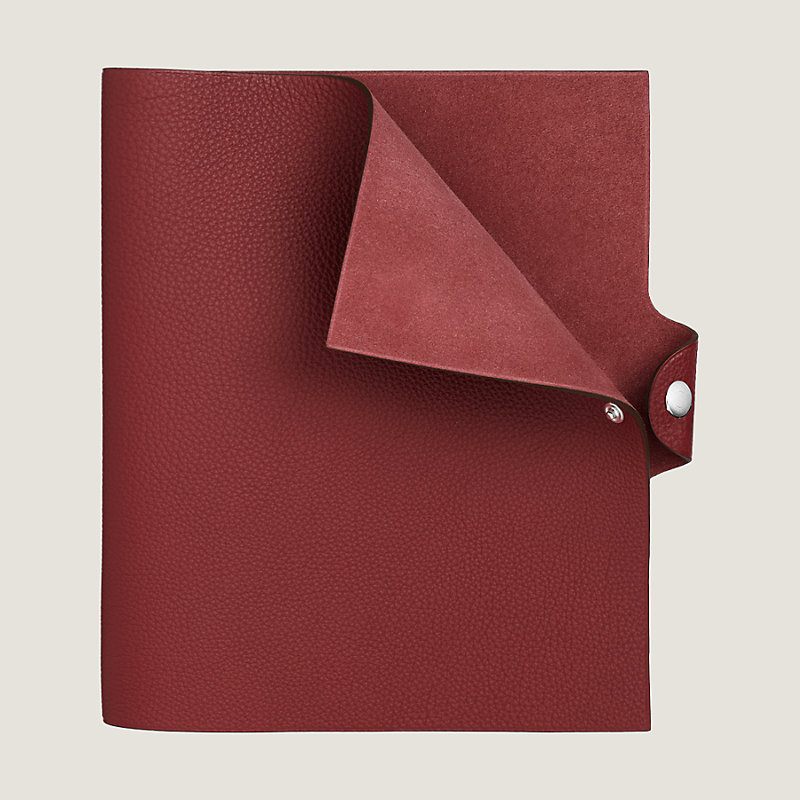 Notebook cover in Togo calfskin with palladium plated Clou de Selle snap closure