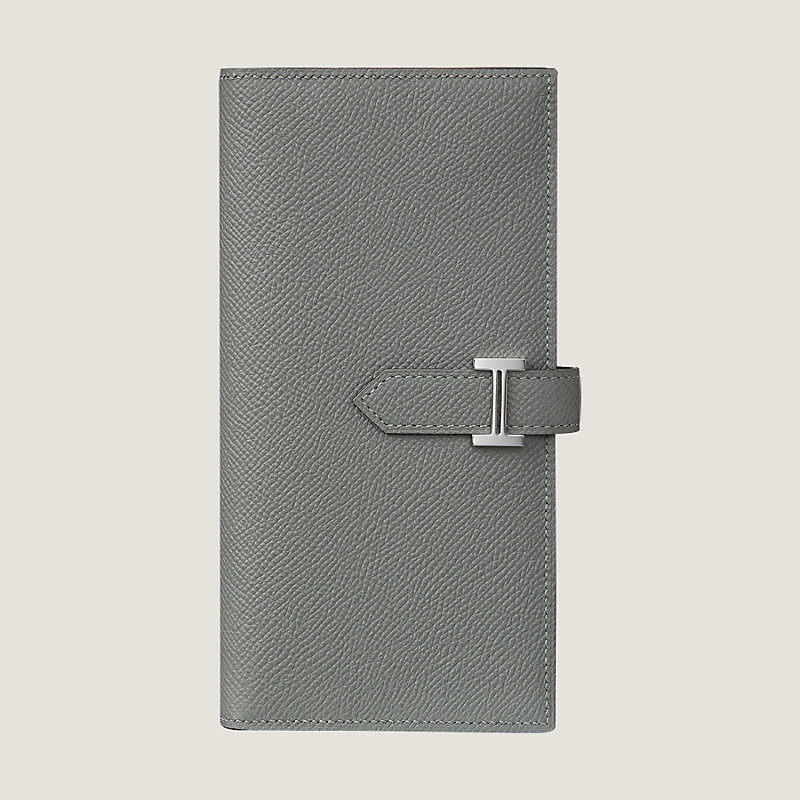 Wallet with gusset in Epsom calfskin with 5 credit card slots, 2 pockets, zipped change purse and palladium plated 'H' tab closure