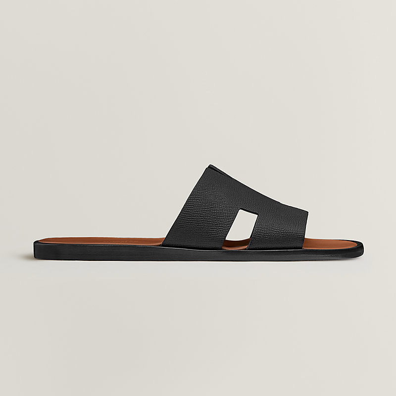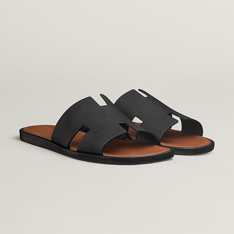 Sandal in Epsom calfskin with iconic "H" cut-out and raw-edged detail.