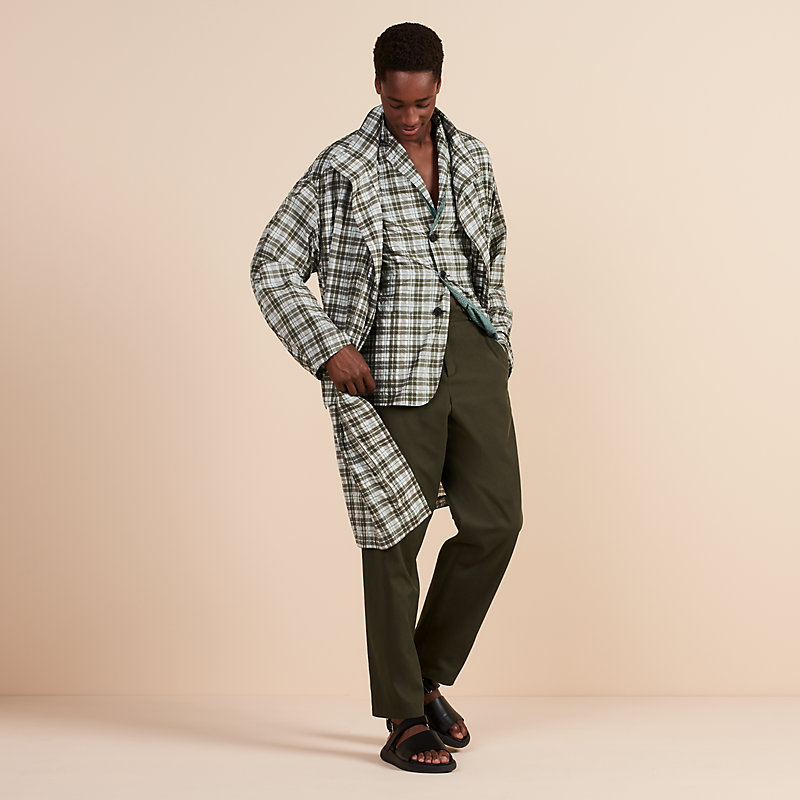 Zipped raincoat in checkered water repellent toilight Vichy canvas (49% polyamide and 51% polyethylene)