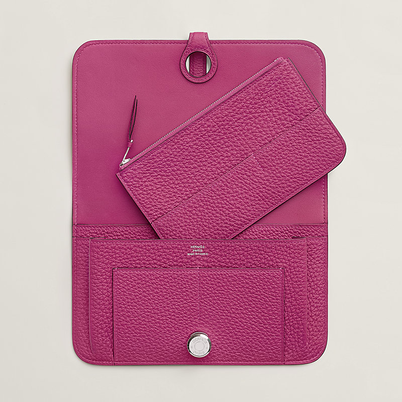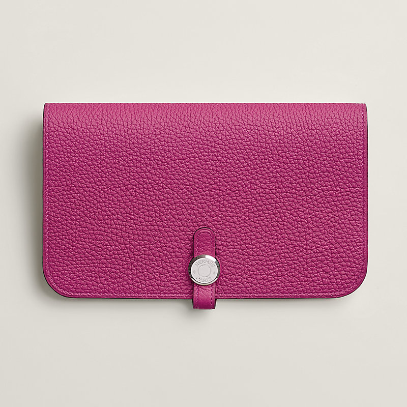 Wallet in Togo calfskin with lambskin lining, 5 credit card slots, 3 pockets, 1 removable change purse with zipper and palladium-plated Clou de Selle closure