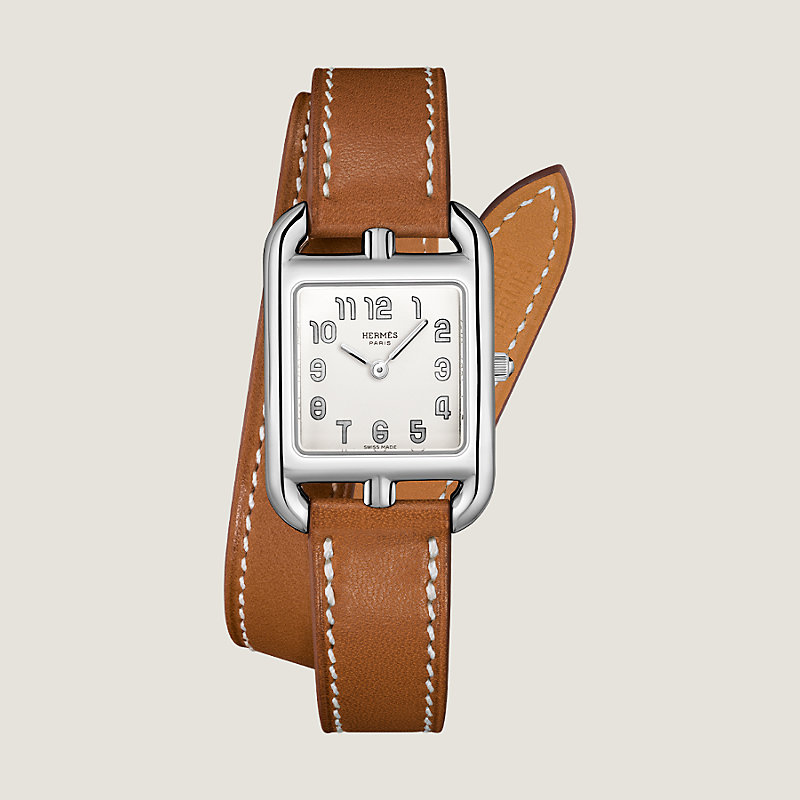 精鋼腕錶,銀白色錶盤,尺寸23 x 23 mm,自然色Barenia小牛皮快拆錶帶。