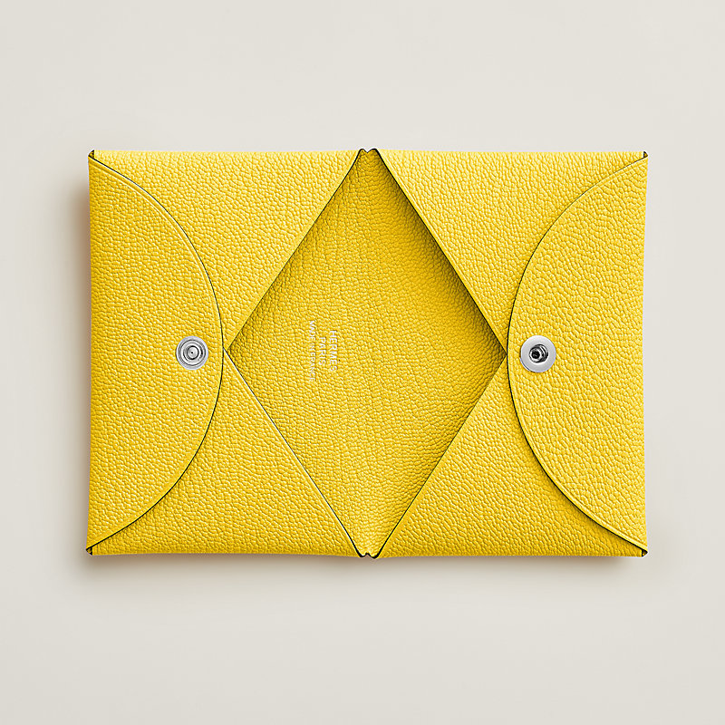 Card holder in Mysore goatskin with 2 credit card slots on each side and palladium plated Clou de Selle snap closure