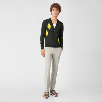 Buttoned cardigan with hemstitched losanges