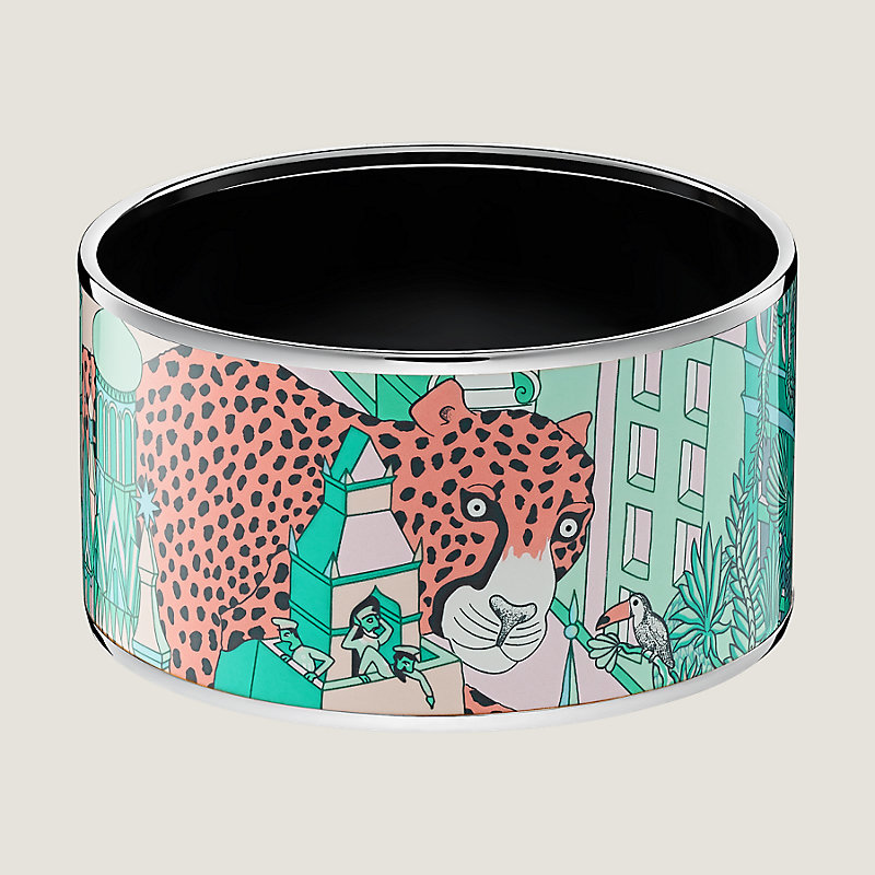 Extra wide bangle in printed enamel with palladium plated hardware