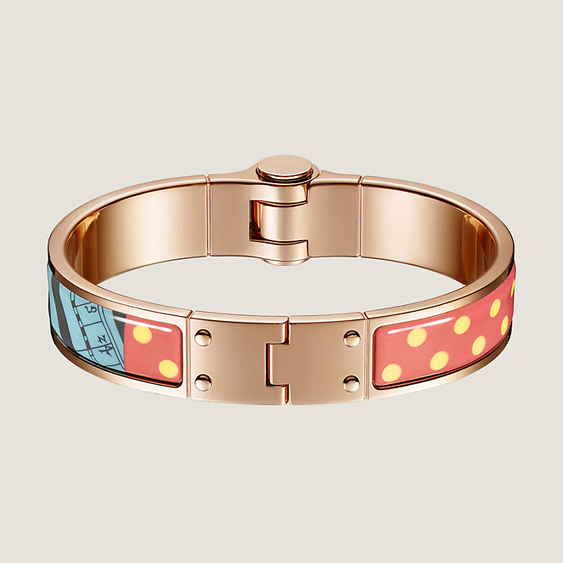 Hermes hinged bracelet in printed enamel, rose gold plated hardware