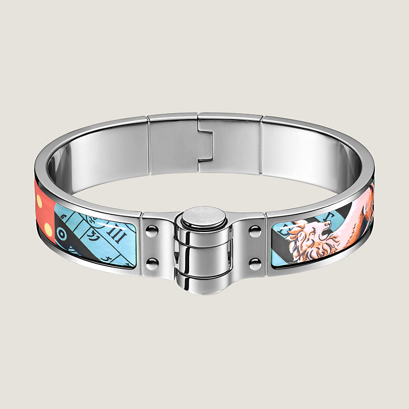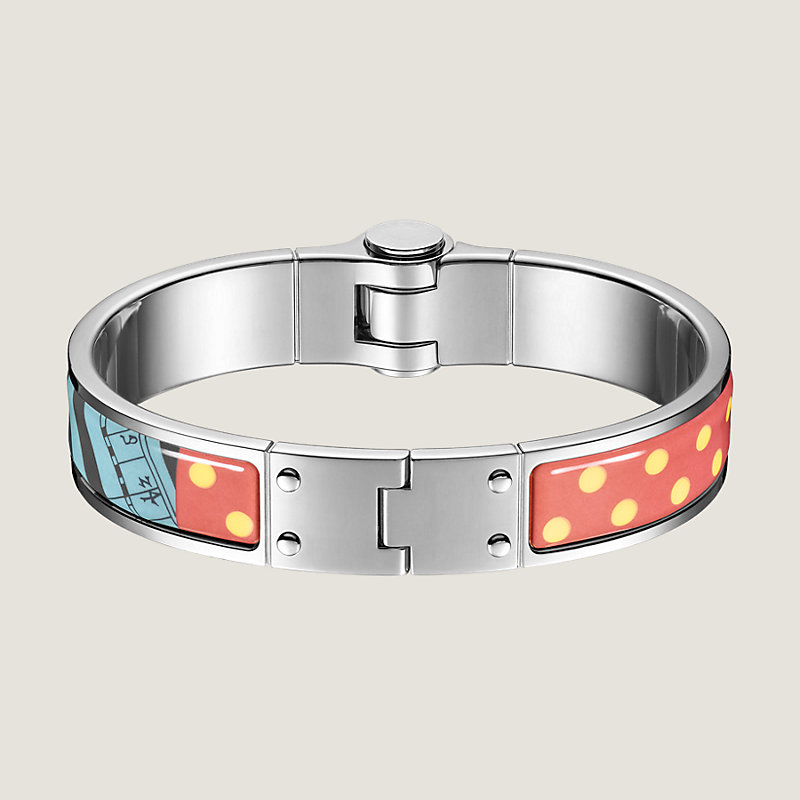 Hermes hinged bracelet in printed enamel, palladium plated hardware