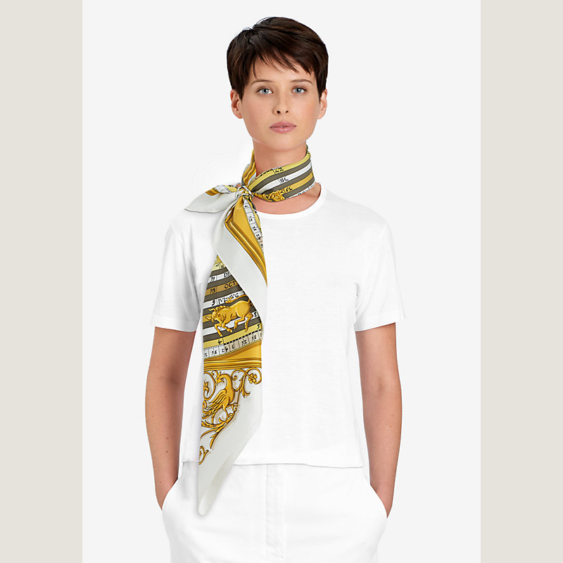 Preserve the beauty of your scarf by avoiding contact with rain, water and other chemicals. Store it flat and untied, and entrust it to a professional dry cleaner when needed.