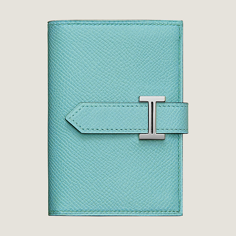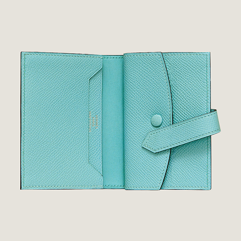 Mini wallet in Epsom calfskin with 2 credit card slots, change purse with snap closure and palladium plated 'H' tab closure