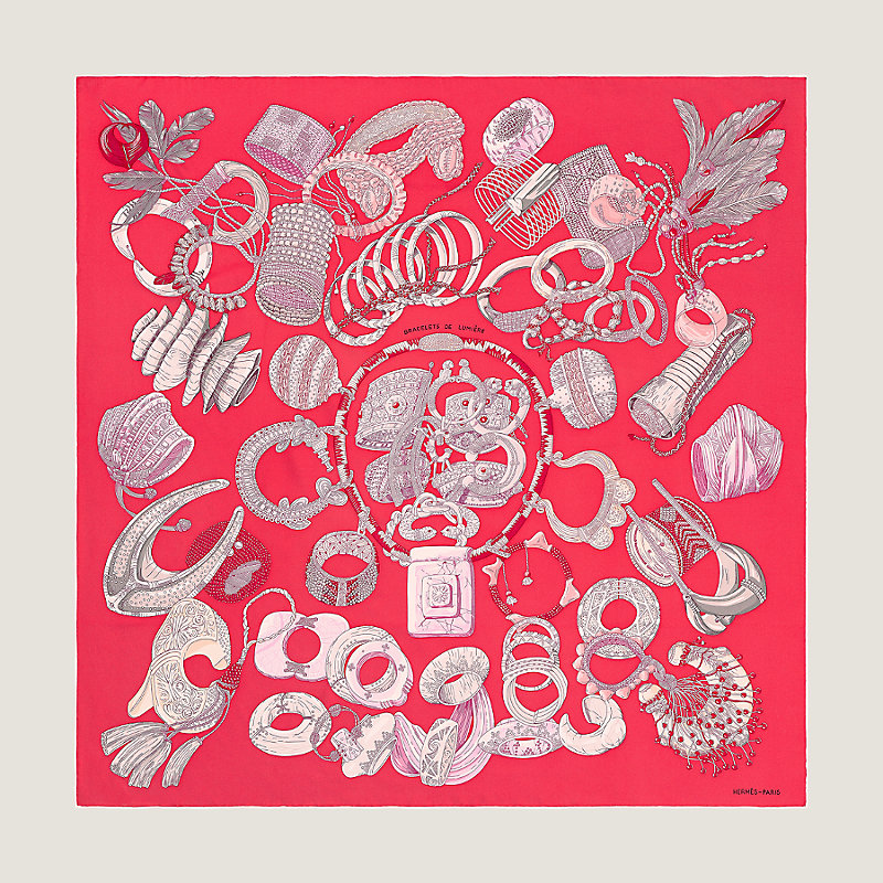 Preserve the beauty of your scarf by avoiding contact with rain, water and other chemicals. Store it flat and untied, and entrust it to a professional dry cleaner when needed.
