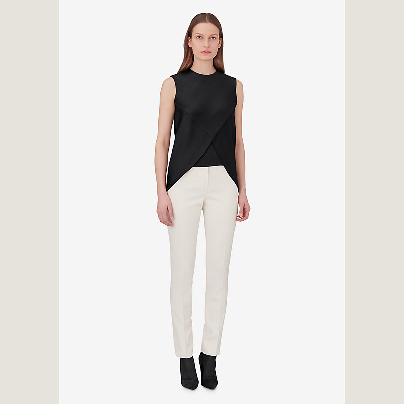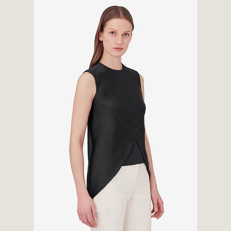 Hermes sleeveless silk top in lightweight double satin with crepe de Chine lining (100% silk)