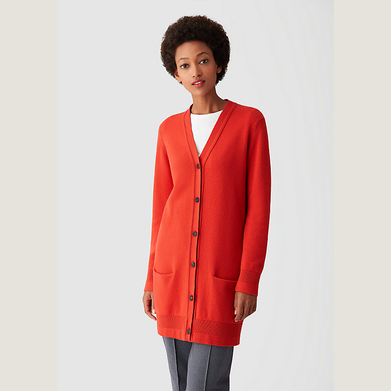 Hermes long cardigan in plain Scottish cashmere (100% cashmere)