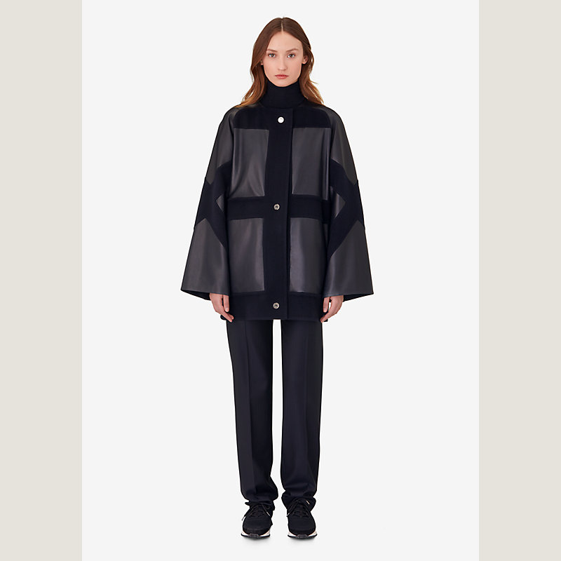 Hermes mix coat in double faced cashmere and lambskin with double faced cashmere and satin lining