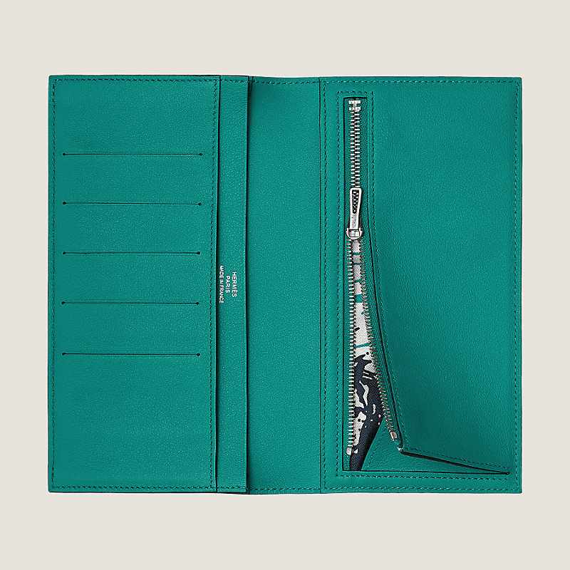 Hermes long wallet in Swift calfskin, silk twill lining with "Cheval Surprise" print