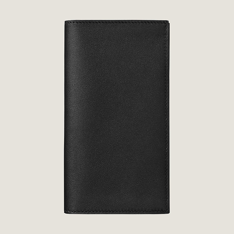 Hermes long wallet in Swift calfskin with "Carré Cube" printed silk lining