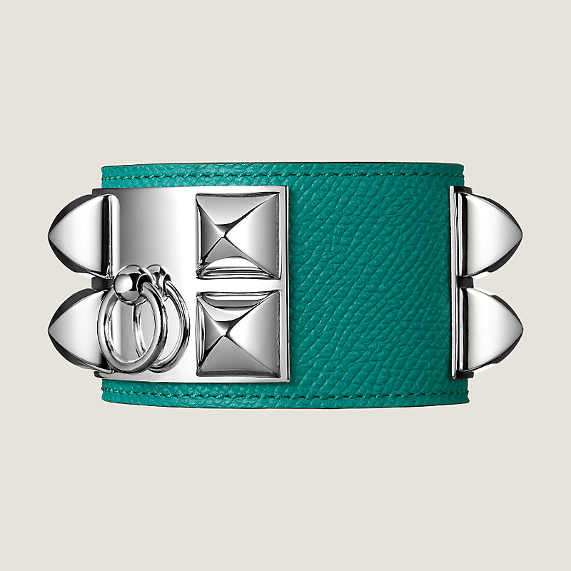 Bracelet in Epsom calfskin with an adjustable closure and palladium plated Medor pyramid studs and ring