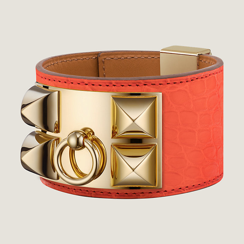 Bracelet in matte alligator with an adjustable closure and gold plated Medor pyramid studs and ring