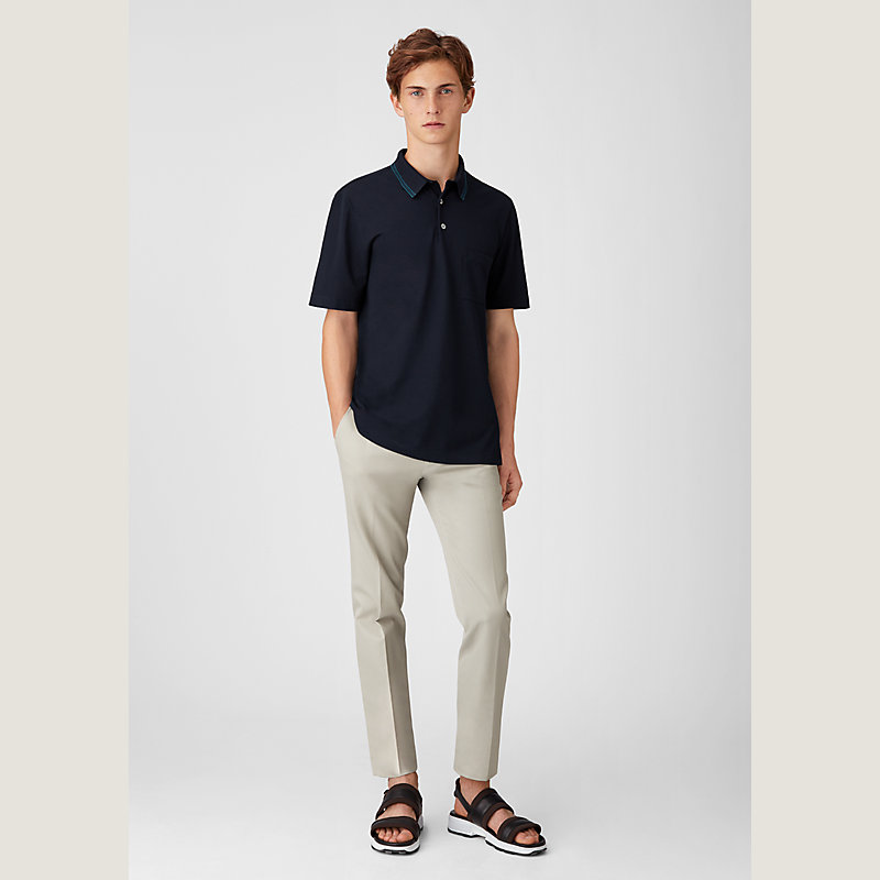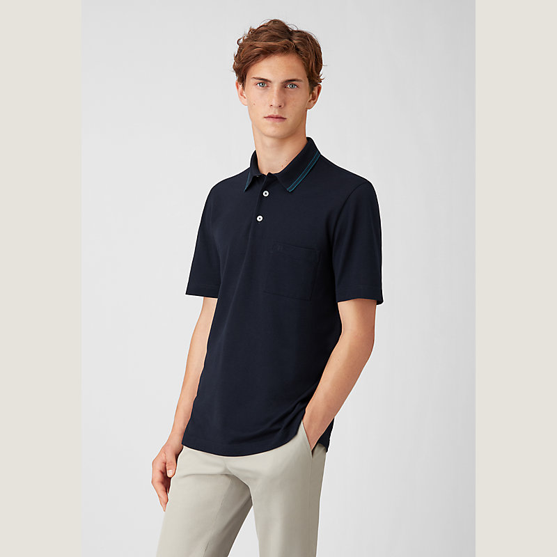 Hermes short sleeve polo shirt in cotton jersey, one front pocket, contrasting striped collar (100% cotton)