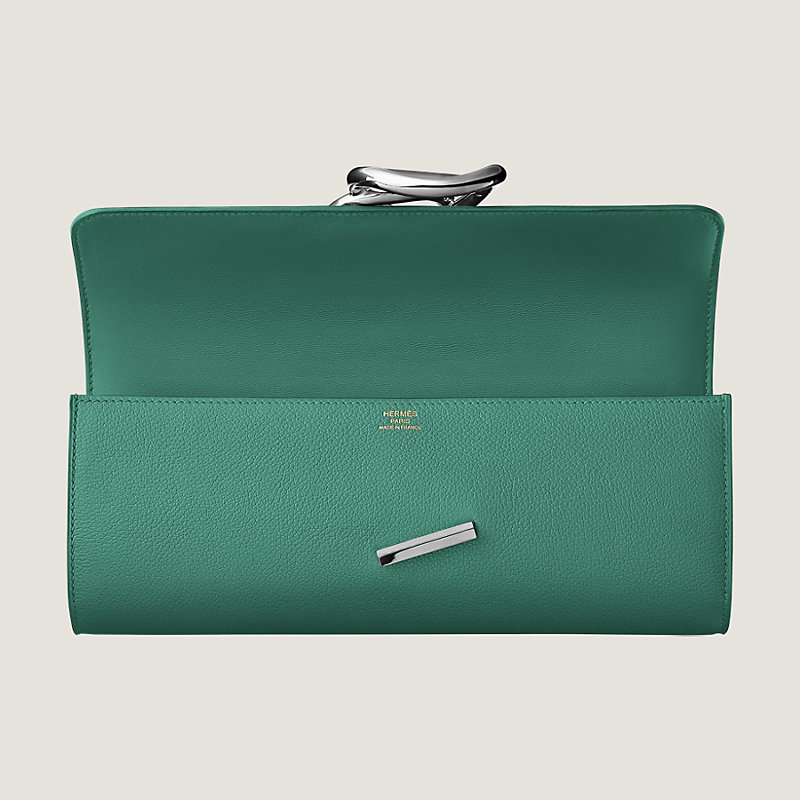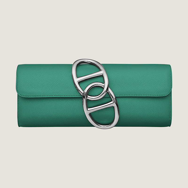 Hermes evening clutch bag in Evercolor calfskin with Chaine d’Ancre clasp in palladium plated hardware