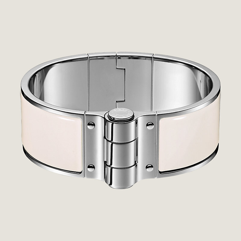 Wide hinged bracelet in plain enamel with palladium plated hardware