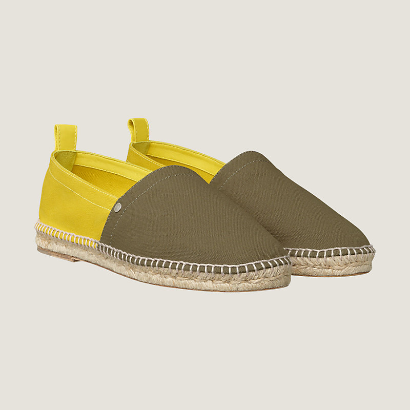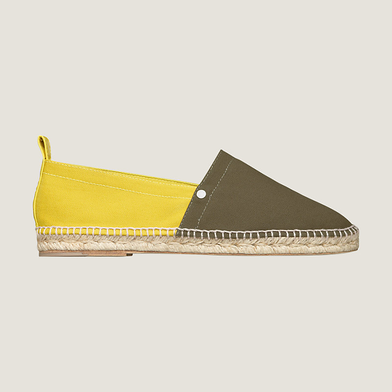Hermes espadrille in cotton canvas and goatskin, palladium plated mini "Clou de Selle", hand-sewn rope sole