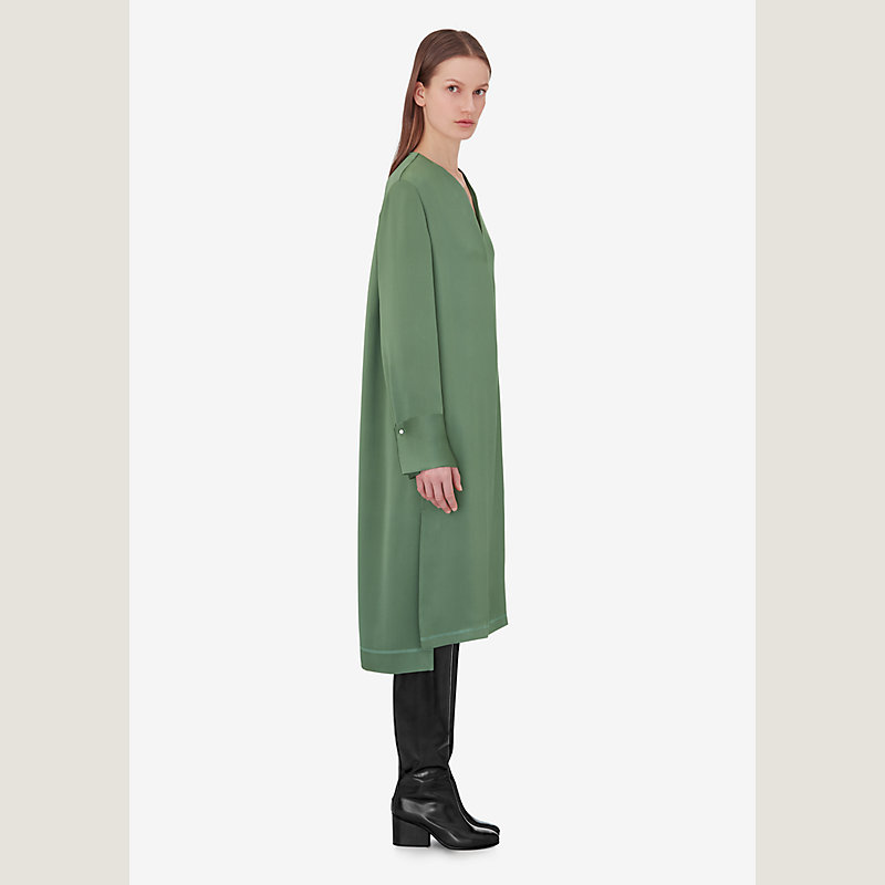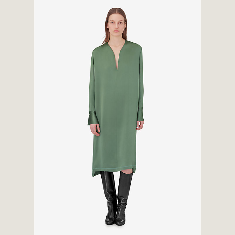 Hermes long sleeve evening dress in lightweight double satin (100% silk)
