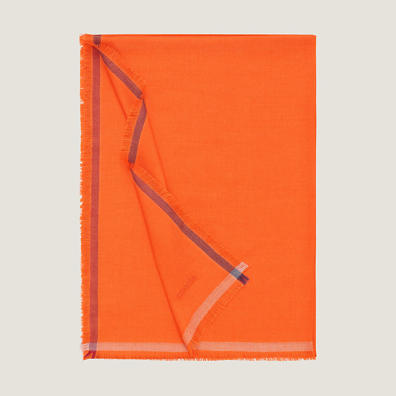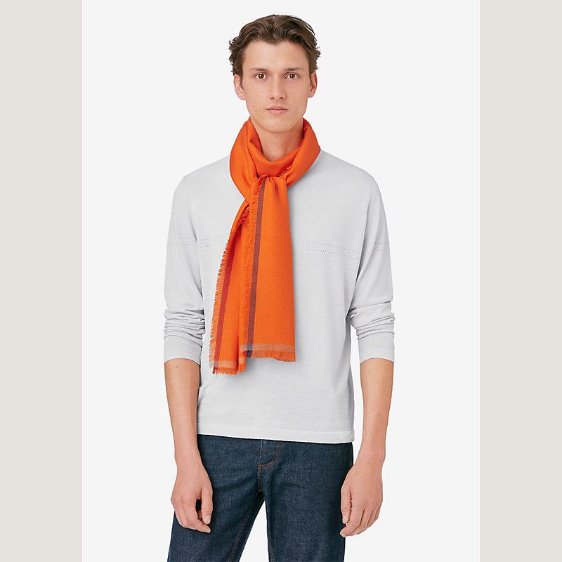 Hermes fringed cashmere and silk muffler (65% cashmere, 35% silk)