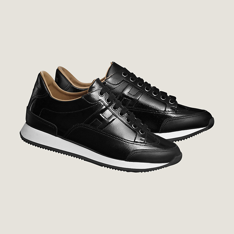 Hermes sneaker in patent leather Epsom calfskin and regular calfskin, white rubber sole with white foam insert