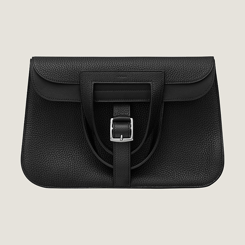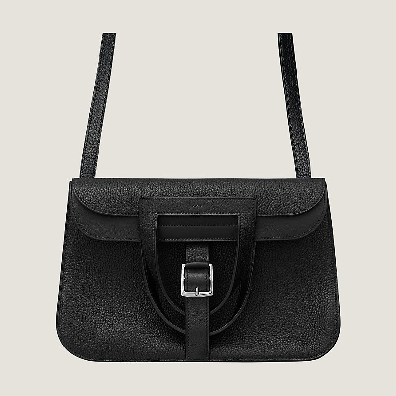 Bag in taurillon Clemence leather with adjustable leather shoulder strap, stirrup shaped handles and palladium plated hardware