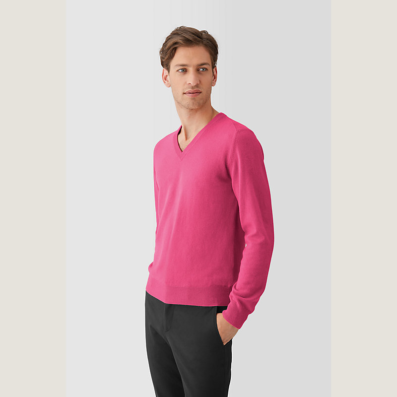 V-neck sweater with inverted seams, 100% cashmere