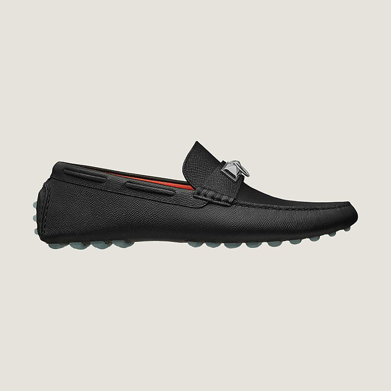 Driving loafer in Epsom calfskin with ruthenium plated "Collier de chien" hardware.