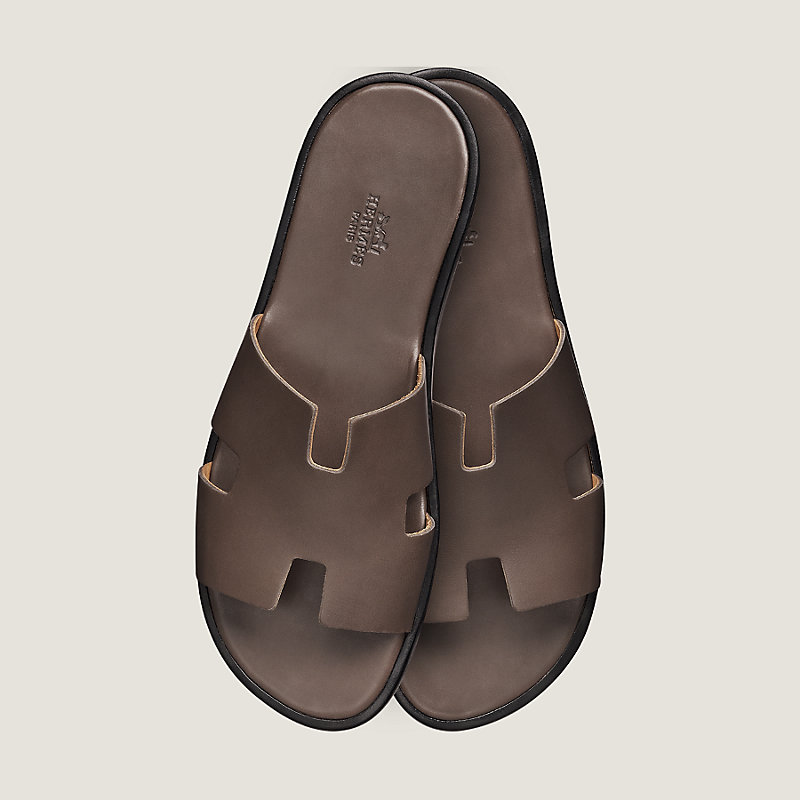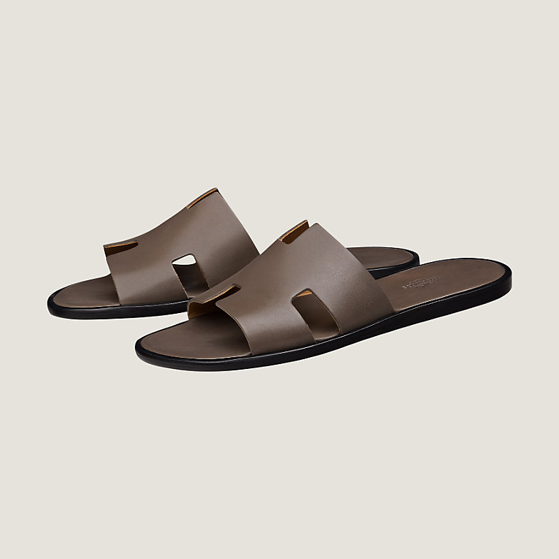 Sandal in calfskin with iconic "H" cut-out and raw-edged detail
