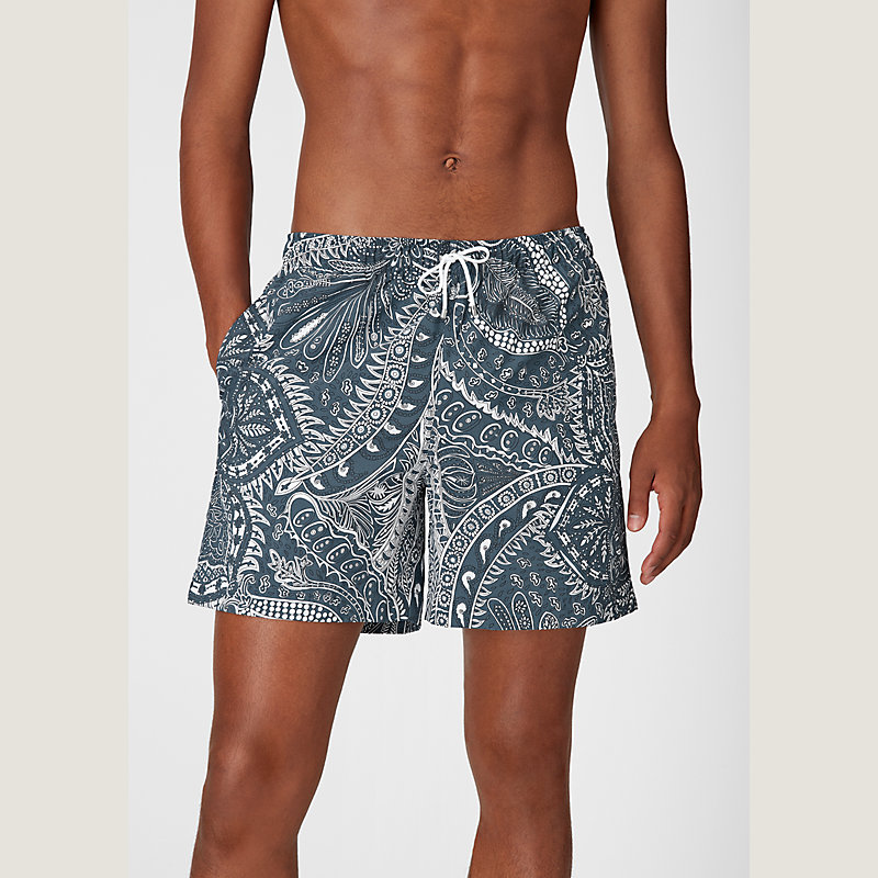 Hermes long swim trunks in "Jardin de la Maharani" print (100% polyamide)