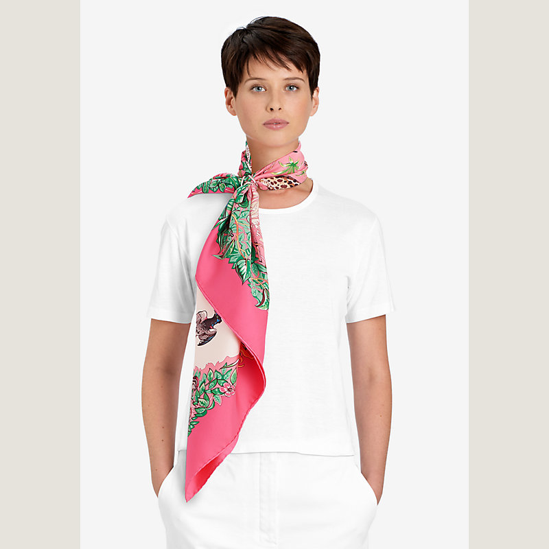 Preserve the beauty of your scarf by avoiding contact with rain, water and other chemicals. Store it flat and untied, and entrust it to a professional dry cleaner when needed.